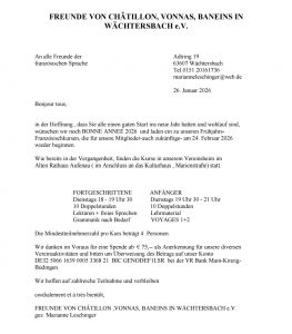 FREUNDE VON CHÂTILLON, VONNAS, BANEINS IN WÄCHTERSBACH e.V. gez. Marianne Leschinger