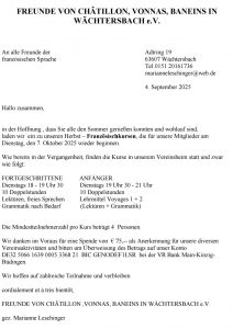 FREUNDE VON CHÂTILLON, VONNAS, BANEINS IN WÄCHTERSBACH e.V. gez. Marianne Leschinger